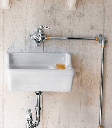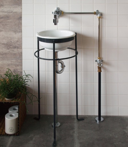 手洗器 グローブや手洗器Mラウンドに組み合わせられるスタンドユニット。昔見たことのあるようなレトロな雰囲気を演出。外付給水ユニットとの組み合わせがおすすめです。