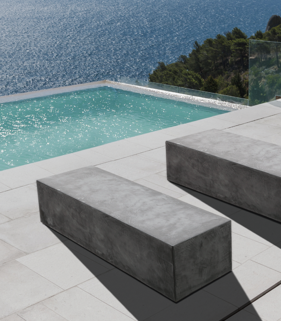 大人気、コンクリート調左官仕上げのコンクリートファニチャーシリーズが新登場。セメントの質感を持ちながらも、樹脂素材で仕上げているため、アウトドア向けに水に強い特性を発揮します。