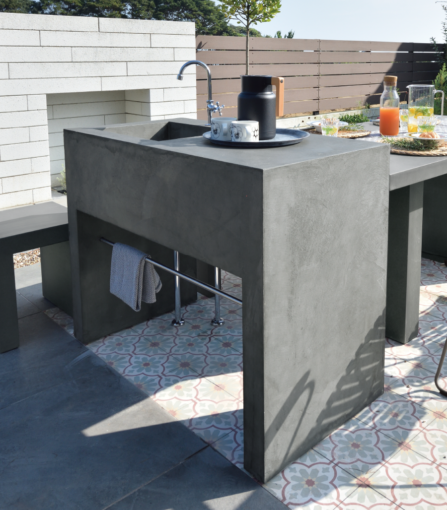 「コンクリートファニチャー アウトドアキッチン」