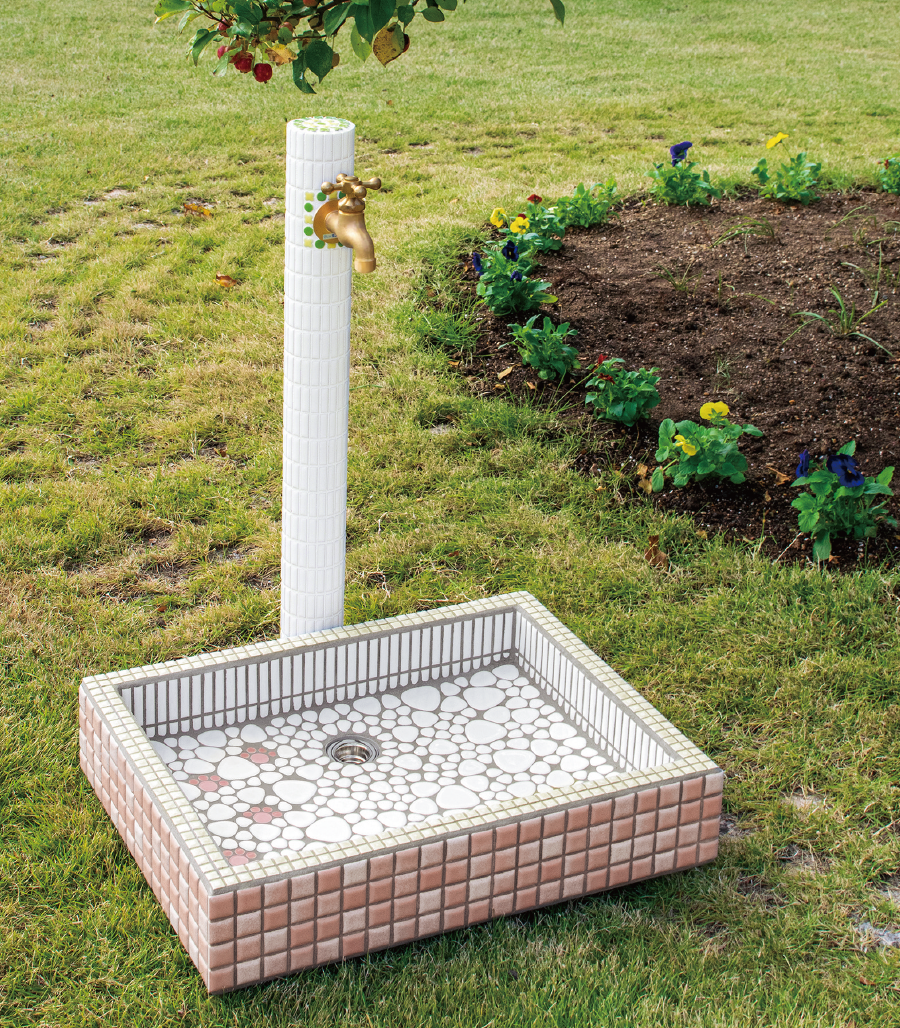 タイルの手作りの味わいが魅力のガーデンパンに、お庭で多用途に活躍する浅型タイプが新登場。タイル張り水栓柱とお好きな組み合わせで、個性的なコーディネートができます。