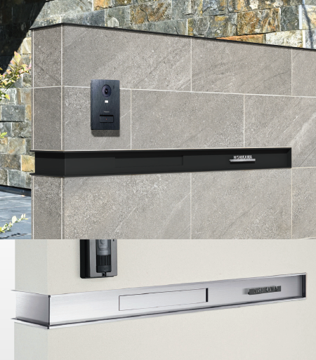 スリムなラインで門周りに新しい付加価値を与えるモデリオ スリット。口金ポストを組み込んだユニットをブロック塀に取り付けた後に壁仕上げをするため、一体感のある美しい仕上がりになります。