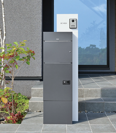 ポスト & 宅配ボックス カレとブリーゼを組み合わせたブリーゼバックII。大きく開く背面扉は配達物を一度に取り出せるので、使い勝手に優れています。宅配ボックスは前、後ろから取り出し可能です。