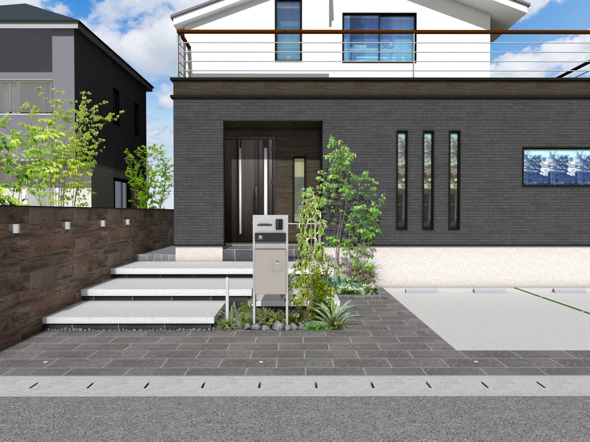 シンプルにこだわった上質なモノトーンと木彫が映えるアーバンモダンファサード