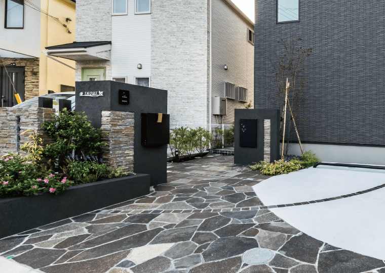 デザインウォールと植栽で空間に立体感を。