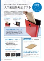 ネット通販の普及により配達物を受け取る機会が多くなったことで、大型配達物が納まるポストの需要が高まりました。そこで、サイン・受け取り印を必要としない配達物の投函ができる大容量ポストを大型配達物対応ポストとして設定し、定番のポストにも大容量タイプを追加しました。ポストを通して届ける人にも受け取る人にも便利な再配達を減らす取り組みを行っています。大型配達物対応ポストとは大型配達物対応ポスト再配達依頼が不要、配達時間を問わない。ネット通販の普及により、多くの配達物が届くようになったことで大型配達物が納まるポストの需要が高まりました。そこで登場したのが従来のポストとサイズをほぼ変えること無く大型配達物に対応したポストです。再配達依頼の煩わしさから解放され、不在時でも確実に荷物を受け取ることができる、受け取る人に優しい設計の大容量ポストです。大きく開く投函口で大型配達物もスッキリ投函!!● 大きな投函口厚みのある配達物もパネルを開けてラクラク取出し。● 大きく開く取出口下記の条件を満たすポストの各商品ページには大型配達物対応マークをつけています。マークについて大型配達物対応W340×L260×t30mmの配達物が投函・取り出し可能。サイン・受け取り印不要サイズW340×L260×t30の配達物に対応しています。❶ サインや受領印を必要としない配達物を 不在時でも受け取れます。❷ 再配達依頼の手間が省けます。 配達時間を気にする必要がありません。❸ ポストにスッキリと収まるので 配達物の安全を確保できます。大型配達物ポストのメリットえ 配達物の内容によっては入らない場合がございます。ご了承ください。● ダイヤル錠●T型カムロック● シリンダー錠配達物の安全を確保するためダイヤル錠などの鍵が付いています。仕様詳細については各商品ページにてご確認ください。配達物の安全を確保する鍵付き。W340×L260×t30対応大容量●実際の商品と写真は異なる場合があります。142E16