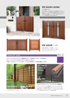 IPE DOOR イぺ材門扉オンリーワンエクステリアE15に掲載商品のうち、下記商品は2016 年1月中旬発刊の 「オンリーワンマテリアルカタログ M10」に移行いたしました。その他、カスタムルーバーフェンスなど、たくさんの木樹脂フェンス部材を掲載しています。エコモックルーバーフェンスエコモックカスタムフェンス(マテリアルM10掲載商品)MATERIAL M10 移行商品抜群の耐候性を持つイペ材門扉は、アプローチからウッドデッキまで、様々なシーンにお使いいただけるスタンダードデザインです。IPE DOOR LEGNA イぺ材門扉 レグナエコモック カスタムフェンスは豊富なモデルからデザインを“選ぶ” 他に、オリジナルなフェンスを創作する事もできる、カスタマイズフェンスです。2種類の面材と、高さの異なる7種のスペーサーを自在に組み合わせる事で、アイディア次第でオリジナルなフェンスを製作可能です。ECOMOC Louver FenceECOMOC Custom Fence目的に合わせて視線をカット。密で引き締まった木目が醸し出すのは重厚感あふれる堂々とした雰囲気。ロートアイアン装飾に残る鎚目の素朴さは、人の手でしか表現出来ない繊細な技。レグナが持つ魅力は素材の良さとハンドメイド技術の調和から生まれる風合いです。●実際の商品と写真は異なる場合があります。31E16