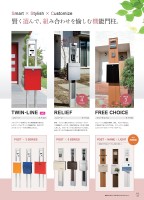 TWIN-LINE オンリーワン商品の照明、表札、ポストのほとんどを取付けることができる、エバーピラーを使用したウッディなフリーチョイスポール。スタンダードな角柱2本で照明器具を挟み込んだシンプルデザインの機能門柱。取付けポストは3シリーズをご用意しました。POLE3 COLORPOLE4COLORフリーチョイス ▶ P.46RELIEF照明、アクリル表札付きのシンプルでロープライスな機能ポールです。印象の異なる4色をご用意しました。ポストセットは人気のポストに対応し自分にぴったりな組み合わせをお選び頂けます。レリーフ ▶ P.44レリーフ ▶ P.42FREE CHOICEPOST× NAME×LIGHTPOST× 3 SERIESPOST× 5 SERIES(一部取付できないアイテムがあります。)ALLFREENEW Smart×Stylish×Customize賢く選んで、組み合わせを愉しむ機能門柱。●実際の商品と写真は異なる場合があります。37E16