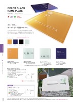 COLOR GLASS NAME PLATEカラーガラスネームプレート日本サイズ変更不可P.642-A-A8日PHOTO:NA1-SGA06M ポスト:NA1-MRHS15WH▶P.290© yellowj - Fotolia.com■ カラーガラスネームプレート品番:NA1-SG46□・NA1-SG33N□(A/B/K/M)OnlyOne価格:¥25,500品番:NA1-SG26N□・NA1-SG32N□(A/B/K/M)OnlyOne価格:¥30,000文字柄着色標準仕様:白(対象:A/B/K)灰(対象:M)サイズ(mm):W200×H200×D9 重量(kg):1.1い 8日 ぅ ガラス(t=8)表:文字、柄(ある物)共ブラスト加工品番:NA1-SG46A 使用書体:欧文:(E-21)Andale Mono Regular 和文:(W-10)DFP隷書体 品番:NA1-SG33NM使用書体:欧文:(E-8)Century Gothic Regular 和文:(W-3)DFP華康ゴシック体W3品番:NA1-SG32NM使用書体:欧文:(E-8)Century Gothic Regular (E-9)Century Gothic Bold 和文:(W-3)DFP華康ゴシック体W3品番:NA1-SG26NB使用書体:欧文:(E-71)DFP太楷書体 和文:(W-11)DFP痩金体W3※SG26Nは、名前のみ着色Option■ 取付ベースプレート 特大品番:NA1-SZ07OnlyOne価格:¥4,500サイズ(mm):W190×H190 t=1い 表札同時出荷 ぅ ステンレスえ ・表札と同時にご注文の際は、工場出荷時に貼付けます。 ・表札と別発注の場合は、別途送料がかかります。 ・P.406・407の商品のみ取付けできます。え ※コンクリートボンドは、現地手配となります。※ ガラスの裏面焼付け色は白ですが、ガラス色により淡いミントグリーンに見えます。A : アプリコットB : ブルーK : ブラックM : ミント※ 品番末尾の□には商品色記号が入ります。Color variationファサードのワンポイントにピッタリの鮮やかなカラーガラスを使用したネームプレート。素材感を活かした文字入れのみのタイプと、デザイン性を高める装飾パーツと組み合せたタイプをご用意しました。美しい発色とぽってりとした艶感のガラス。※ネームプレートのお名前レイアウト作成は3回目より有料¥1,000となり、受注に至らない場合でも料金が発生しますので予めご了承ください。●実際の商品と写真は異なる場合があります。●オンリーワン価格には、施工費、消費税は含まれておりません。●LTは出荷日を表します。実際の納期は地域によって異なります。※ 沖縄・離島の送料は都度ご確認ください。406E16ネームプレートガラスカラーガラスネームプレート