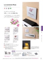 P.306-307のセラフェィスポストフレンチとのコーディネイトが可能です。P.533にバックライト表札として、ラ・クローヌ スクエア ライトLEDボックスが掲載されています。夜間には光を受けて透過する陶磁器の表札が味わい深く門周りを演出してくれます。La couronne Rose ラ•クローヌ ローズえ ・陶磁器製ですので若干の寸法誤差が生じます。 ・取り付けは施工業者にて施工してください。 ・割れ物ですので、衝撃をあたえないでください。 ・焼き物につき、多少の色ムラや柄、形状の歪みがあります。日本14日陶磁器P.653-V品番:GM1-UL-O OnlyOne価格:¥1,200■ 穴あけ加工ぉ ・施工上穴あけを必要とする場合はオプション にて加工させていただきます。 ・その際、位置をご指示ください。 (穴サイズφ5mm×2ヶ所)■ 表札 取付プレート品番:GM1-SP-V OnlyOne価格:¥5,000 ぅ ステンレス え ・表札によってサイズが異なります。 ・単品注文の時は別途送料がかかります。Optionブトン品番:GM1-ULRT-□書体:ギャラモンドプティ品番:GM1-ULRP-□書体:キャスロン•アンティークブルーム品番:GM1-ULRB-□書体:ALSスクリプトフェシル品番:GM1-ULRF-□書体:アカデミーえ 書体はギャラモンド/ALSスクリプト/キャスロン・アンティーク/アカデミー のみとなります。日本語をご希望の場合は別途お問い合わせください。■ ラ・クローヌ スクエア ライト ローズOnlyOne価格:¥27,000 サイズ(mm): W150×H150×D6 重量(kg):0.5※品番の□には文字色ブラック(B)・ ブラウン(C)が入ります。ブラック(B)ブラウン(C)● 文字色フランス語で王冠を意味するラ・クローヌ。花冠のように薔薇のイラストを纏った気品が漂うお洒落な表札です。P.306のセラフェィスポストフレンチとのデザインコーディネイトもお楽しみ頂けます。イングリッシュテイストの可愛いく、おしゃれな陶器の表札。※ネームプレートのお名前レイアウト作成は3回目より有料¥1,000となり、受注に至らない場合でも料金が発生しますので予めご了承ください。●実際の商品と写真は異なる場合があります。●オンリーワン価格には、施工費、消費税は含まれておりません。●LTは出荷日を表します。実際の納期は地域によって異なります。※ 沖縄・離島の送料は都度ご確認ください。419E16ネームプレート陶器ラ・クローヌ ローズ