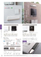 ▶ポスト「クラッシー」 P.159 「キャップウッド ファイン」 P.286CoordinateLuxe wood リュクスウッド6日タイルステンレスP.650-L日本木目調との組み合わせが 更なる贅沢を演出。COORDINATE▶ ポスト:P.286 キャップウッド ファイン COORDINATE▶ ポスト:P.285 フォルマプラス照明:P.580 モノライト文字レイアウト▲ 品番:KS1-A100E使用書体:イングリッシュ▲ 品番:KS1-A100C使用書体:金文体▲ 品番:KS1-A100J使用書体:オプティマ▲ 品番:KS1-A100H使用書体:細丸ゴシック、カッパ―プレイトゴシック■ リュクスウッドOnlyOne価格:¥28,000重量(kg):0.77仕上:ネーム部:ブラスト加工・塗装 ベース:焼付塗装・パーツ:鏡面仕上、屋外耐候樹脂フィルム(木目)ぉ 寸切りボルト2本付き(直径4mm×長さ25mm)ぉ 文字数:漢字3文字以内・英数字12文字以内え 文字カラー:タイルごとに固定。 漢字+英字の場合、ブラックの タイルの漢字はホワイト、 ホワイトのタイルの漢字は ブラック、英字はシルバー。 漢字のみ・英字のみの場合は シルバー。え 書体「カッパープレイト」は、 小文字対応不可。 え 書体「イングリッシュ」は、 1文字目大文字他は小文字。 ヨコタイプ サイズ(mm):約W168×H144×D20タテタイプ サイズ(mm):約W144×H168×D20木目カラーシルバーベースにモノトーンタイルと鏡面パーツ、そこにシックな木目調パーツをプラスした贅沢なセパレートサイン。立体感のある上質なサインがファサードに高級感を与えてくれます。エルムタモタモアイボリー▲ 漢字+英字▲ 漢字+英字▲ 漢字のみ▲ 漢字のみ▲ 英字のみ▲ 英字のみ品番エルムタモタモアイボリーブラックKS1-A100GKS1-A100HKS1-A100IホワイトKS1-A100JKS1-A100KKS1-A100Lタイルカラー木目カラー品番エルムタモタモアイボリーブラックKS1-A100AKS1-A100BKS1-A100CホワイトKS1-A100DKS1-A100EKS1-A100Fタイルカラー木目カラー※ネームプレートのお名前レイアウト作成は3回目より有料¥1,000となり、受注に至らない場合でも料金が発生しますので予めご了承ください。●実際の商品と写真は異なる場合があります。●オンリーワン価格には、施工費、消費税は含まれておりません。●LTは出荷日を表します。実際の納期は地域によって異なります。※ 沖縄・離島の送料は都度ご確認ください。450E16ネームプレート陶器+金属リュクスウッド