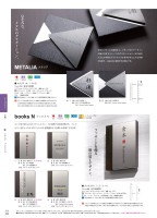 books N ブックスN日本15日P.648-G■ ブックスN( 1・2・3・4)OnlyOne価格:¥19,500サイズ(mm):W120×H160×D22 重量(kg):0.55ぅ アクリル+ステンレスHL スペーサー:アクリル(ネジ出し加工済み)仕上げ:ベース:アクリル・木目調塗装/文字:腐蝕彫刻塗装ぉ 取付方法はボンド・ボルト併用(ボンドは別途市販品をご用意ください。)エッジまで回り込んだステンレスプレートの効果で立体感が際立ち、ブックカバーをまとったようなフォルムは、愛読書のような親しみを感じさせます。ファサードを飾る 一冊の装丁デザイン。品 番: HS1-BKN-1 ※OSS非対応書 体: 和文: DFP中楷書体 欧文: DFP平成明朝体W7文字色: ブラック(デザイン部:レッド)1品番:HS1-MEA-1書体:和文:DFP祥南行書体W5 欧文:Century Gothic RegularAー1品番:HS1-MEB-2書体:欧文:Century Gothic RegularBー2品 番: HS1-BKN-3 ※OSS非対応書 体: 和文: DFP祥南行書体W5 欧文: DFP平成明朝体W7文字色: ブラック(デザイン部:ホワイト)3品 番: HS1-BKN-2書 体: 欧文: DFP平成明朝体W7文字色: ブラック(デザイン部:ホワイト)2品 番: HS1-BKN-4書 体: 和文: DFP華康ゴシック体W5 欧文: Century Gothic Regular文字色: ブラック(デザイン部:イエロー)4え ステンレスは非常にサビにくい金属ですが環境により汚れやホコリに含まれる塩分や金属でもらいサビ が発生する場合がございます。きれいな水で定期的に汚れ、ホコリを洗い流すことをおすすめします。梨地のブラックと鏡面仕上、ブラックのヘアーラインが織りなすモノトーンのグラデーション。折り紙のように文字板のトライアングルを浮かすことで立体感が生まれ、上品な中に個性が光る表札です。METALIA メタリア日本15日P.648-G■ メタリア ( Aー1・Bー2)OnlyOne価格:¥31,000サイズ(mm):W165×H165×D9.5 重量(kg):0.92ぅ ステンレス 文字部:カラーステンレス(ブラック)仕上げ:本体:ヘアライン、梨地加工(ブラック)、鏡面 文字 :腐蝕彫刻塗装ぉ 取付方法はボンド・ボルト併用(ボンドは別途市販品をご用意ください。)え ステンレスは非常にサビにくい金属ですが環境により汚れやホコリ に含まれる塩分や金属でもらいサビが発生する場合がございます。 きれいな水で定期的に汚れ、ホコリを洗い流すことをおすすめします。息を呑む、 メタルのグラデーション。イージーロック対応P.338参照※ネームプレートのお名前レイアウト作成は3回目より有料¥1,000となり、受注に至らない場合でも料金が発生しますので予めご了承ください。●実際の商品と写真は異なる場合があります。●オンリーワン価格には、施工費、消費税は含まれておりません。●LTは出荷日を表します。実際の納期は地域によって異なります。※ 沖縄・離島の送料は都度ご確認ください。460E16ネームプレート金属メタリア・ブックスN