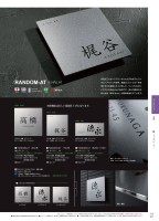150角 品番:IP1-21-3M和文:5.楷書体 欧文:G.Optimum200角 品番:IP1-21-1L和文:3.明朝体 欧文:G.OptimumW200 H90 品番:IP1-21-2S和文:8.筆文字 欧文:G.OptimumW200 H200W150 H150W200 H90RANDOM-AT ランダムAT表面加工にはヘアラインよりも光沢を抑えたランダムヘアラインを採用。側面はコントラストを表現するため鏡面に仕上げました。シンプルな中にこだわりを詰め込んだ逸品です。表札の裏側には、取付金具(厚み9mm)が標準装備されています。● LAYOUT VARIATIONレイアウト1レイアウト1レイアウト2レイアウト2レイアウト3レイアウト3■ RANDOM-AT 200角品番:IP1-21-□L(□の中にレイアウト記号1~3が入ります。)OnlyOne価格:¥37,500サイズ(mm):W200×H200×D12 (取付金具D9含む)重量(kg):1.1■ RANDOM-AT 150角品番:IP1-21-□M(□の中にレイアウト記号1~3が入ります。)OnlyOne価格:¥32,000サイズ(mm):W150×H150×D12 (取付金具D9含む)重量(kg):0.7W150H150■ RANDOM-AT W200×H90品番:IP1-21-□S(□の中にレイアウト記号1~3が入ります。)OnlyOne価格:¥32,000サイズ(mm):W200×H90×D12 (取付金具D9含む)重量(kg):0.59W200H90ぉ 文字色は、4種類からお選びください。 (黒・グレー・ホワイト・シルバー)コンビでも可能です。ぅ ステンレス:ランダムへアライン 側面:鏡面 ぃ P.654-Y か P.470側面:鏡面表面:ランダムヘアライン文字は、エッチング加工(彫り込み)+焼付塗装日本10日ステンレスランダムへアライン本体側面は美しい鏡面仕上げになります。取付方法 P.470P.654-Y471E16ネームプレート金属ランダム-AT※ネームプレートのお名前レイアウト作成は5回目より有料¥1,000となり、受注に至らない場合でも料金が発生しますので予めご了承ください。●実際の商品と写真は異なる場合があります。●オンリーワン価格には、施工費、消費税は含まれておりません。●LTは出荷日を表します。実際の納期は地域によって異なります。※ 沖縄・離島の送料は都度ご確認ください。