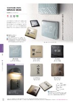 灰釉(三本ライン)品番:VS1-TGSTA書体:和文:京円アイボリー(彫り柄)品番:VS1-TGSCI書体:和文・欧文:京円黒(彫り柄)品番:VS1-TGSCB書体:和文:DFP隷書体青磁(彫り柄)品番:VS1-TGSCC書体:和文・欧文:DFP金文体W5白(三本ライン)品番:VS1-TGSTW書体:和文:京円照明:品番:VS1-TLSCC ▶P.594日本六古窯のひとつに数えられている歴史と伝統ある常滑焼で作られたネームプレートです。土の柔らかさが際立つフォルムが印象的で、味わいを感じさせます。カラーによってその雰囲気を変え、和風だけでなくモダンなお住まいにも似合います。史とす。味わ気を合い伝統土のいを変え、ます。伝統の技術が作りだすモダンな表札。■ 常滑焼グレイスサインOnlyOne価格:¥29,800サイズ(mm):本体 W140×H140×D15 重量(kg):0.8ぉ 文字色は黒・白から選べます。ご注文の際に指定ください。え 手作りの焼き物のため、個々で若干表情・形状が違います。 文字色をお選び頂く際、ベースのカラーによっては文字が 見えづらくなる場合がありますのでご注意ください。日本10日陶器P.648-Gぉ 表札の取り付けについて背面には左図のようにネジ出し金具が事前に仮止め用として設置されています。ご利用いただいたうえ、本体は接着剤で確実に固定してください。(接着剤は別途市販品をご用意ください。)TOKONAME WARE GRACE SIGN常滑焼グレイスサインシリーズアイテムの照明とのコーディネートをお楽しみいただけます。常滑焼ランプシェード▲P.594 アイボリー(彫り柄)アイボリー(彫り柄)Coordinate※ネームプレートのお名前レイアウト作成は3回目より有料¥1,000となり、受注に至らない場合でも料金が発生しますので予めご了承ください。●実際の商品と写真は異なる場合があります。●オンリーワン価格には、施工費、消費税は含まれておりません。●LTは出荷日を表します。実際の納期は地域によって異なります。※ 沖縄・離島の送料は都度ご確認ください。496E16ネームプレート陶器常滑焼グレイスサイン