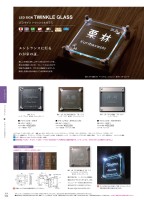 美しい光を放つ新しいタイプのLEDサインです。表札の四隅のLEDが、プレート中心に向けて照射する構造で、ガラスに満遍なく光が入り、彫刻した部分だけが美しくうかびあがります。LED SIGN TWINKLE GLASS LEDサイン トウィンクルガラスエントランスに灯るわが家の証。え 配線については必ず有資格者が行ってください。書体:パークベース:ブラック 飾り柄:ストレッチリーフ■ トウィンクル・ガラス品番:MY1-1403□ OnlyOne価格:¥52,000プレート固定部:アルミサイズ(mm):□198×D55~58 重量(kg):ガラス・ガラスシンプル:1.8(ベース エスプレッソ・ココアのみ:1.62)、ガラスモダン:1.85(ベース エスプレッソ・ココアのみ:1.67) ぅ ベース:磁器質タイル (エスプレッソ・ココアのみ:アクリル木目フィルム貼り 3M屋外用ダイノックス) プレート彫刻:サンドブラスト加工 無着色・素彫り プレート:ガラス(板厚8mm) ボックス:AES樹脂ぉ LED・照度センサー付きトランスボックス内蔵 中国製書体:上段:DFP太楷書体 下段:カタン ベース:ブラック■ トウィンクル・ガラスモダン品番:MY1-1405□ OnlyOne価格:¥55,000カバー部:ステンレス書体や飾り柄、ベースタイルの種類を豊富に取りそろえております。表札シミュレーターで自由に組み合わせてお好みのデザインをお作りください。▶www.sign-simulator.com書体:上段:DFP祥南行書体 W5 下段:ティラ ベース:ココア 飾り柄:スプレッドリーフA書体:DFP流隷体W5 ベースタイル:エスプレッソ 飾り柄:スモールバード■ トウィンクル・ガラスシンプル品番:MY1-1404□ OnlyOne価格:¥52,000プレート固定部:ステンレス/樹脂え タイルの色にはムラがあり、写真、シミュレーターと 実際の商品は異なる場合があります。※品番の□に( )内のカラー記号が入ります。ぉ 飾り柄はP.436~P.437、P.486~P.487の正方形タイプの柄が全て選択可能です。(トウィンクル・ガラスモダンには柄が入りません。)14日日本サイズ変更不可P.644-B書体:上段:DFP祥南行書体 W5 下段:ティラ ベースタイル:ダークブラウン 飾り柄:スプレッドリーフA書体:上段:DFP祥南行書体 W5 下段:ティラ ベース:ココア 飾り柄:スプレッドリーフリA書体:上段:DFP太楷書体下段:カタングレー ( G )ブラック( K )ダークブルー( L )ココア( C )エスプレッソ( E )( B )ダークブラウン( R )ダークレッド 書体:パークベース:ブラック飾り柄:ストレッチリーフ書体上段DFP祥南行書体W5下段テラ要電気工事明暗センサー内蔵Color variation※ネームプレートのお名前レイアウト作成は3回目より有料¥1,000となり、受注に至らない場合でも料金が発生しますので予めご了承ください。●実際の商品と写真は異なる場合があります。●オンリーワン価格には、施工費、消費税は含まれておりません。●LTは出荷日を表します。実際の納期は地域によって異なります。※ 沖縄・離島の送料は都度ご確認ください。550E16ネームプレートバックライトトウィンクルガラス