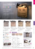 タイルサイズ(mm) : □195×D8ぅ プレート:磁器質タイル(板厚8mm) プレート彫刻:サンドブラスト加工 文字色:こげ茶のみ 飾り部分:ロートアイアンナチュラルな表情と、やさしいあかり。アイアンから放たれるLEDの光がタイル全体をやさしく包み込む温かくぬくもりのある表札です。タイルカラー3色、デザイン4種からお選び頂けます。ダブルリーフ品番:MY1-1651□(スリムLED無し) MY1-1647□(スリムLED付き・要トランス) MY1-1414□(LED付き・トランス内蔵) サイズ(mm) : W260×H240×D74 : D60(スリムタイプ)タイルカラー:アッシュピンク ( P )書体:ユニバ飾り柄:スプレッドリーフAアイビー品番:MY1-1650□(スリムLED無し) MY1-1646□(スリムLED付き・要トランス) MY1-1418□(LED付き・トランス内蔵)サイズ(mm) : W240×H230×D74 : D60(スリムタイプ)タイルカラー:アプリコット ( A )書体:パーク飾り柄:フルブルームブドウ品番:MY1-1652□(スリムLED無し) MY1-1648□(スリムLED付き・要トランス) MY1-1419□(LED付き・トランス内蔵)サイズ(mm) : W216×H220×D74 : D60(スリムタイプ)タイルカラー:アプリコット ( A )書体:上段:DFP隷書体 下段:ティラ飾り柄:アンドセンスバード品番:MY1-1649□(スリムLED無し) MY1-1645□(スリムLED付き・要トランス) MY1-1415□(LED付き・トランス内蔵)サイズ(mm) : W217×H240×D74 : D60(スリムタイプ)タイルカラー:ココアベージュ (C )書体:上段:DFP隷書体 下段:ティラ飾り柄:アンドセンスぉ 飾り柄はアンドセンス・スプレッドリーフA・ フルブルームからお選びください。※トゥインクルタイルスリムには該当しません。構造上基盤ボックスが露出します。壁に埋込はできません。明暗センサー標準装備。基盤ボックスの下部に位置します。●トウィンクルガラス・タイル共通仕様ダブルリーフ番□無バード品番:MY11649□(スリムLED無し)アイビー番□無ブドウ番□無LED SIGN TWINKLE TILE LEDサイン トウィンクルタイル14日日本サイズ変更不可P.644-Bココアベージュ( C )アッシュピンク( P )アプリコット( A )※品番の□に( )内のタイルカラー記号が入ります。Color variation● トゥインクルタイル スリム● トゥインクルタイルえ 配線については必ず有資格者が行ってください。え タイルの色にはムラがあり、写真、シミュレーターと 実際の商品は異なる場合があります。※スリムタイプは基盤ボックスがなくスッキリ収まります。OnlyOne価格:¥33,000(LED無し) ¥36,000(LED付き・トランス別売)重量(kg):0.73■ トウィンクル・タイル スリムNEW ぉ テープLED付き え トランス別売要トランス■ トウィンクル・タイルOnlyOne価格:¥44,000(LED付き・トランス内蔵)重量(kg):1.3 ぉ 高輝度LED 照度センサー付きトランスボックス内蔵 中国製要電気工事Option■ トランスボックス品番:MY1-1892 OnlyOne価格:¥9,000※ 詳細はP.538を参照ください。ぉ トランスボックスカバー付き。え トランスボックスのみ購入の場合は別途運賃を 頂戴します。要電気工事NEW トランスボックスカバートランスボックスMY1-1645C明暗センサー内蔵※ネームプレートのお名前レイアウト作成は3回目より有料¥1,000となり、受注に至らない場合でも料金が発生しますので予めご了承ください。●実際の商品と写真は異なる場合があります。●オンリーワン価格には、施工費、消費税は含まれておりません。●LTは出荷日を表します。実際の納期は地域によって異なります。※ 沖縄・離島の送料は都度ご確認ください。551E16ネームプレートバックライトトウィンクルタイル新商品