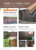 エコモック カスタムフェンスは豊富なモデルからデザインを“選ぶ” 他に、オリジナルなフェンスを創作する事もできる、カスタマイズフェンスです。2種類の面材と、高さの異なる7種のスペーサーを自在に組み合わせる事で、アイディア次第でオリジナルなフェンスを製作可能です。マテリアルカタログM10 ▶P. 470掲載マテリアルカタログM10 ▶P. 478掲載マテリアルカタログM10 ▶P. 474掲載食品トレー・発泡スチロールからリサイクルされた 「Woody R・P」(木のようなリフォーミングポリスチレン樹脂)超簡単で施工性抜群!腐らず変色しにくい。しかも、軽量化された発砲資材のウッディーアールピーシリーズです。フェンスはパチンシステム構造なので、スピーディな施工が可能です。絶妙な角度で視線を遮りながら通風構造で風を通す通風タイプ。ルーバー材の重なりで視線を遮りプライバシーを守る目隠しタイプ。2タイプの特殊な形の独自プラグを採用することで、最適な角度にルーバーを固定し、目的に合わせて視線を遮ることができます。本エクステリアカタログ掲載のフェンスの他にも、オンリーワンマテリアルカタログM10にたくさんの木樹脂フェンス部材、ルーバー材が掲載されています。ECOMOC Custom Fenceエコモックカスタムフェンス(再生木フェンス/境界仕切用)エコモックルーバーフェンス(再生木フェンス/目隠し用)ウッディアールピー シリーズ(フェンス/ボード)ECOMOC Louver FenceWoody R・P Series木樹脂フェンス部材のご紹介オンリーワンマテリアルカタログM10 掲載商品通風タイプ目隠しタイプ目的に合わせて視線をカット!「選べる」 &「作れる」 デザインフェンス。●実際の商品と写真は異なる場合があります。640E16