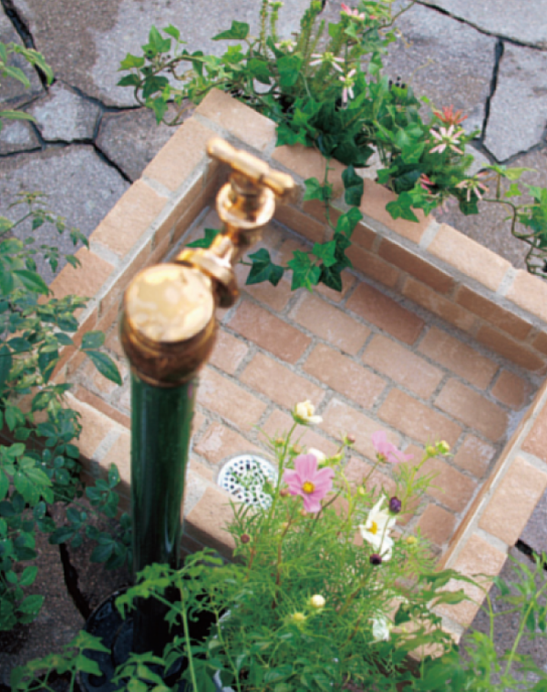 アンティークブリックス水栓柱(レッドブラウンミックス)・アンティークブリックス ガーデンパン(レッドブラウンミックス)