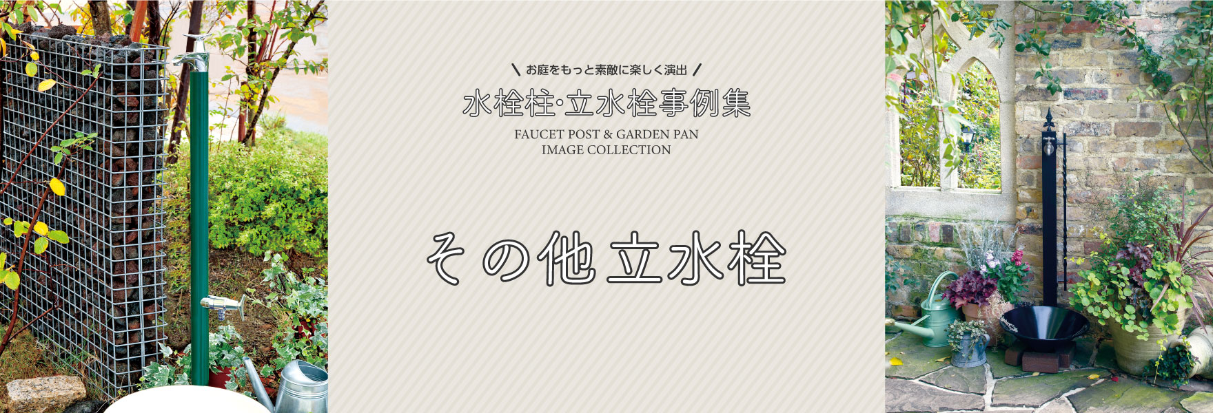 アルミ二口水栓柱(ライトブロンズ)・万能ホーム胴長水栓(錆肌)・ホース接続水栓(研磨)
