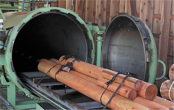 低分子フェノール樹脂保存処理木材のエコアコールウッドは、国産杉の間伐材を有効利用し、林業の活性化、健全な森林の維持、地球環境の保全等に繋がるサスティナブルなHWP(伐採木材製品)です。