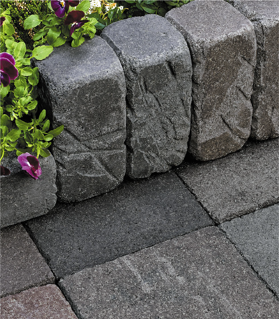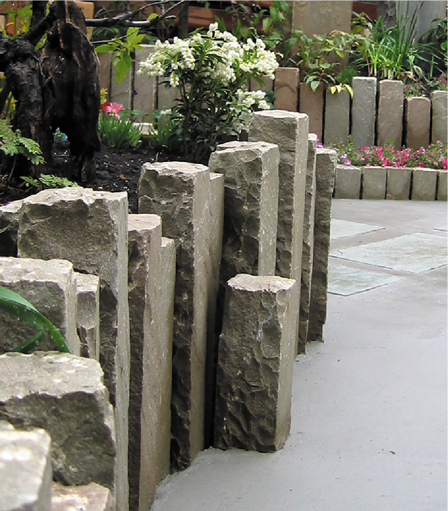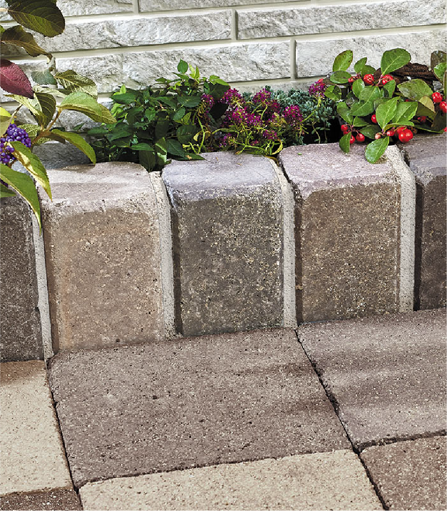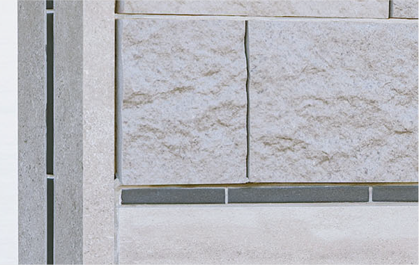 様々な色味をたたえたブラウンが人気の硬質砂岩のハーヴェストブラウンに、コバを追加しました。厚コバは、扱いやすい柱状で花壇の見切りにリズミカルな変化をつけ、薄コバを敷いて使えば空間に変化をもたらします。