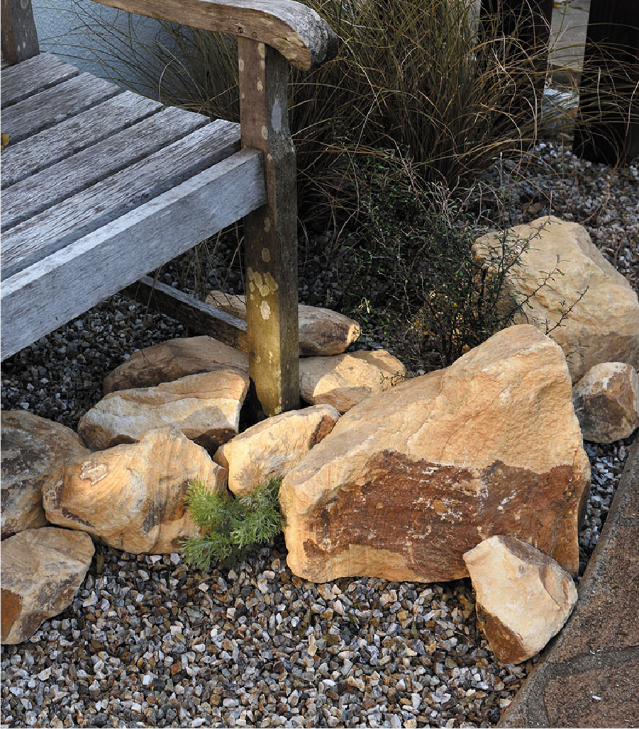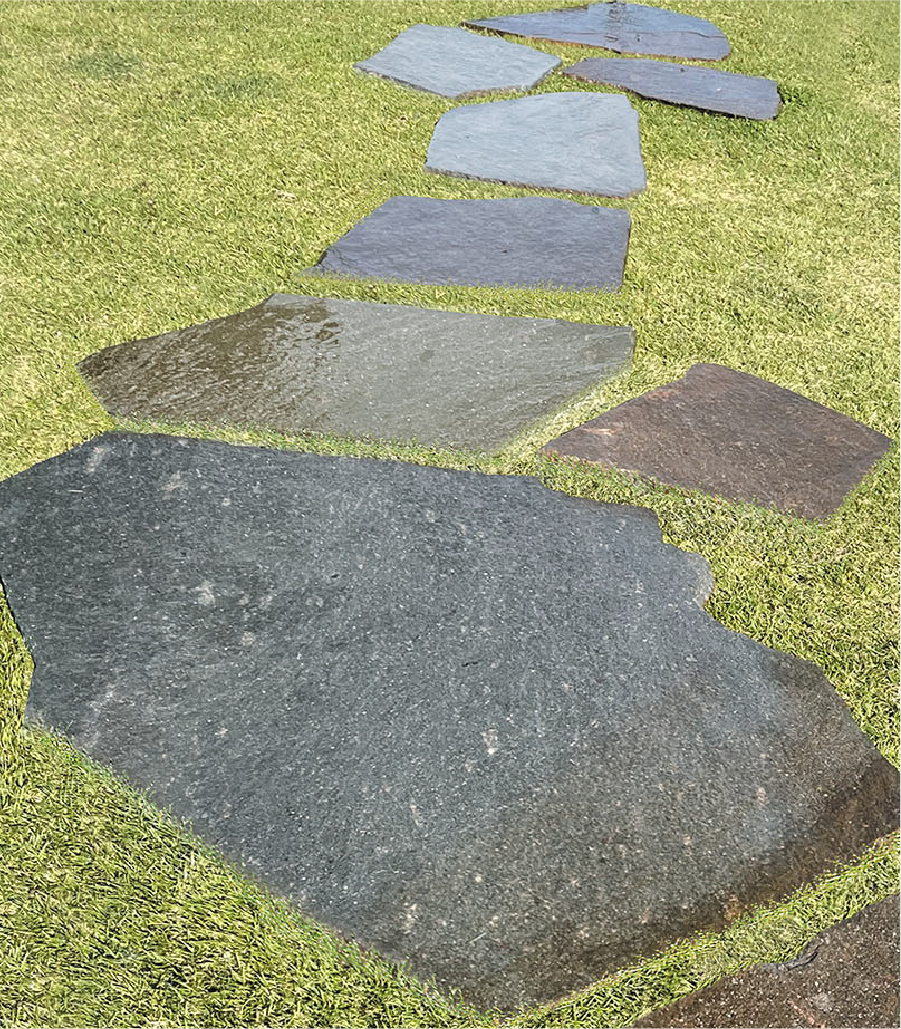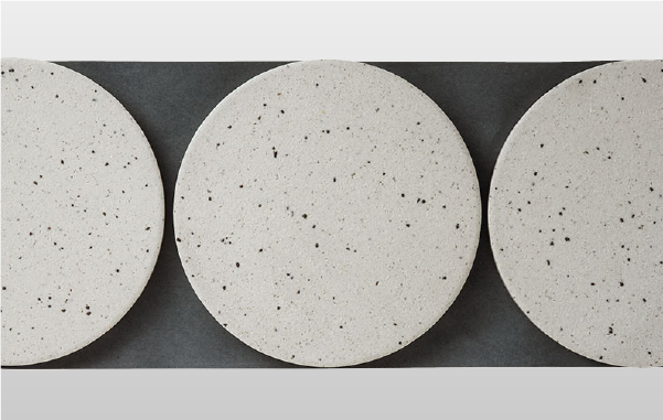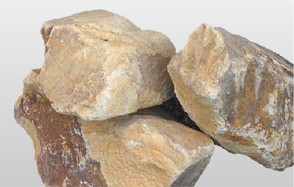 磁器の原料となる標高2000 mの産地で採掘される陶石です。主に砥石に使用され、氷点下でも割れない強度があります。濃茶から白に変化するマーブル模様は土や緑との相性が良く、景観になじみます。