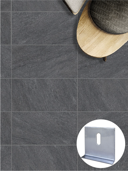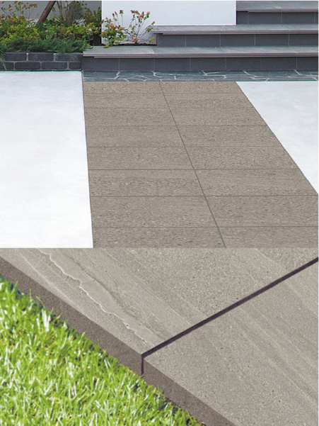 落ち着いた色味の大判タイルを3種類追加しました。いずれもアンチスリップでお庭やアプローチの床面にぴったりです。「プログレ」と「ラミナ」は20㎜厚で車の乗り入れもOK です。「ゲール」は、受け金具を使えば壁面への取付けも可能です。