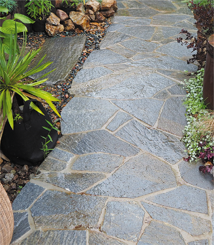 グレー系やブラウン系で分けていますが、非常に色幅のある石種の乱形。目地色にもこだわることでまるでモザイクアートのような美しい景色が生まれます。