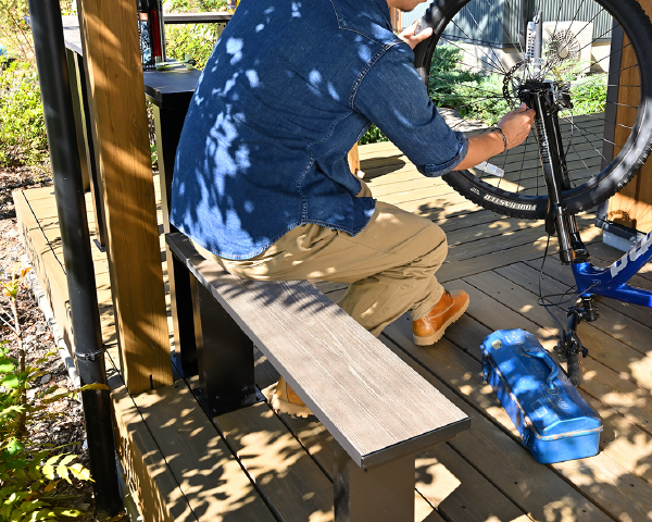 オークカラーのウッド部は耐候性に優れたエコアコールウッド。天然木だからDIYで自分なりにアレンジするのも簡単。穴をあけてアメリカンなサインも付けちゃえ!徐々に変化していく風合いも楽しんで!