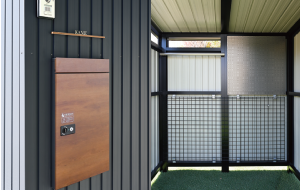 ポスト & 宅配ボックス カレとブリーゼを組み合わせたブリーゼバックII。大きく開く背面扉は配達物を一度に取り出せるので、使い勝手に優れています。宅配ボックスは前、後ろから取り出し可能です。