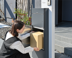 投函・取出しは前入れ前出しのため、狭小地で玄関前にスペースがない場合等でも使いやすい設計です。