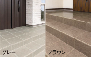 使い易い価格帯でナチュラルな質感のテラコッタ調タイル。表面の釉薬の上にコランダムという滑り止めの粒を焼き付けているので雨掛かりする場所でもご使用いただけます。グリーン購入法適合品で、リサイクル素材を使用しています。