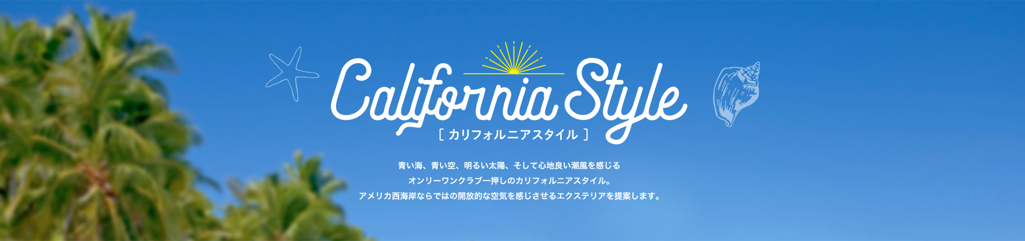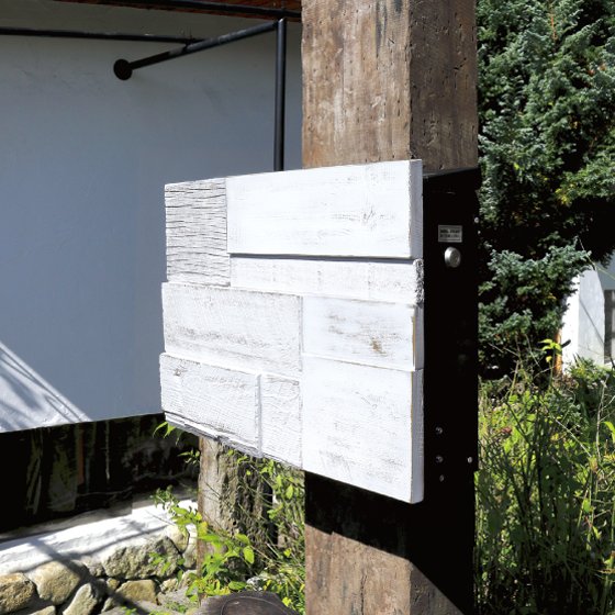 天然木の自然な質感は、素朴ながらインパクトのあるファサード空間を演出します。木肌を活かし塗装した木片をランダムに配置しカリフォルニアスタイルに仕上げました。