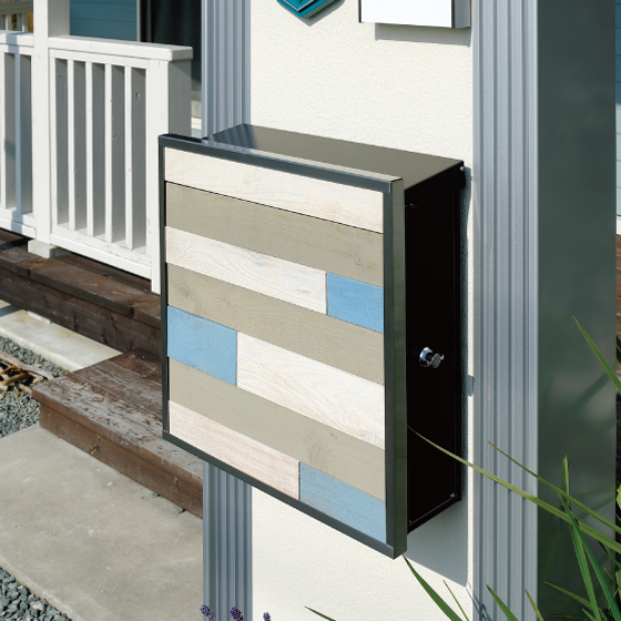 学校や駅のロッカーの様なシンプルなフェイスのポスト。無駄を一切省いたデザイン。工業的なデザインは流行のインダストリアルスタイルにも良く合います。
