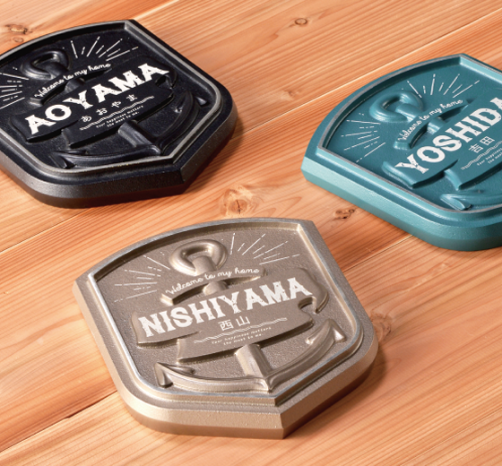 船を守る錨(いかり)に、家を「守る」意味を重ねて、錨をモチーフにエンブレムのように仕上げた表札です。船乗りのシンボルを我が家のシンボルに。