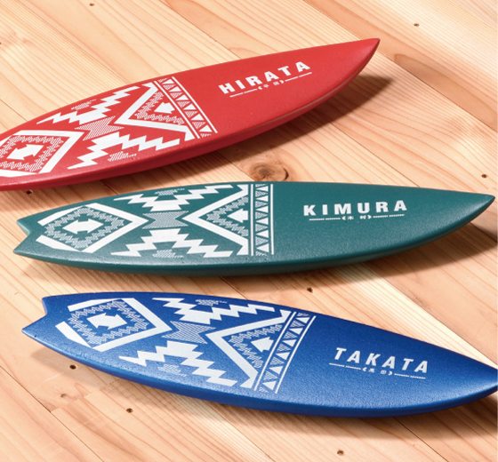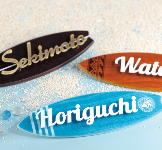 玄関先にミニチュアのツインテールボードのネームプレートを掲げれば気分は一気にビーチハウス。ファサード空間に爽やかな風を運んできてくれそうです。