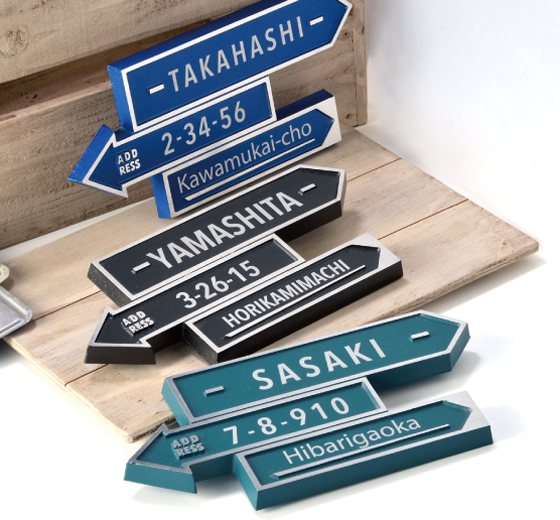 カリフォルニアの海沿いの街にある道路標識をモチーフにデザインしました。遊び心いっぱいの、おもてなしのアルミ鋳物表札です。