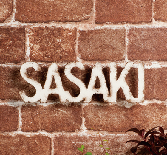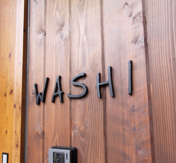 わざと所々に欠けを作り、文字の縁部分にヴィンテージ塗装を施した切り文字表札。どこか無骨さを感じさせ、よりインダストリアルな雰囲気を醸し出します。
