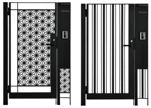 日本の伝統紋様や格子パターンを大胆に用いたアイアン製、機能門柱・門扉セット。門扉はデザインにより透け感や見え方が変わり、シーンに合わせたコーディネートが可能。日本らしさを大切にしながら、現代の暮らしや住宅に調和するようにデザインしています。