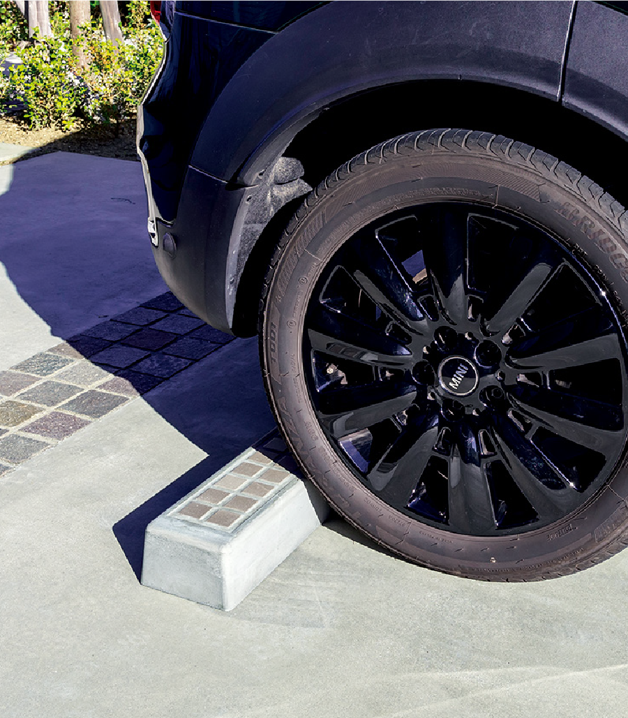 モザイクタイル、化粧砂利で華やかなカースペースを演出します。安全・美観・機能性に優れたコンクリート製の車止めブロックです。