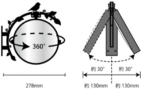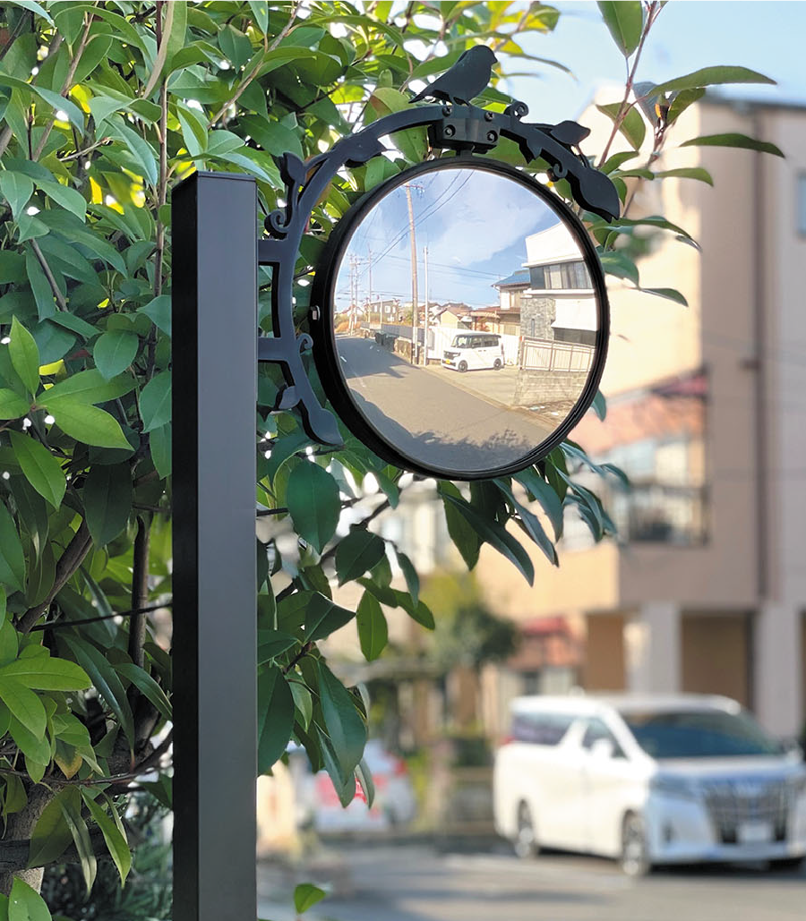 機能を重視しながら、固定アーム、フレームデザインにもこだわったガレージミラーです。フレームのみのシンプルタイプの他、ナチュラルな雰囲気のリーフタイプ、リーフに小鳥をあしらったバードタイプなど、様々な住宅テイストにオシャレに溶け込みます。また、横固定、上置き※、ぶら下げ※など壁付対応のほか、ポール建てにも対応しています。
