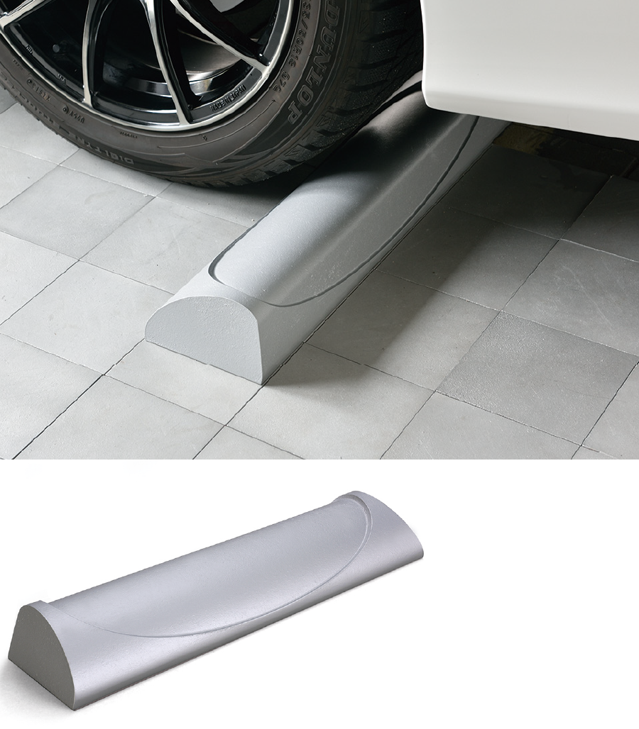 アルミニウム鋳造型で強靭性、耐食性に優れています。直下圧6トンの耐荷重性能を実証し、軽量で施工しやすくどんな大きさのタイヤにも対応した車止め。ステップ部は、薄く設計し「自然な踏み心地」を実現しています。