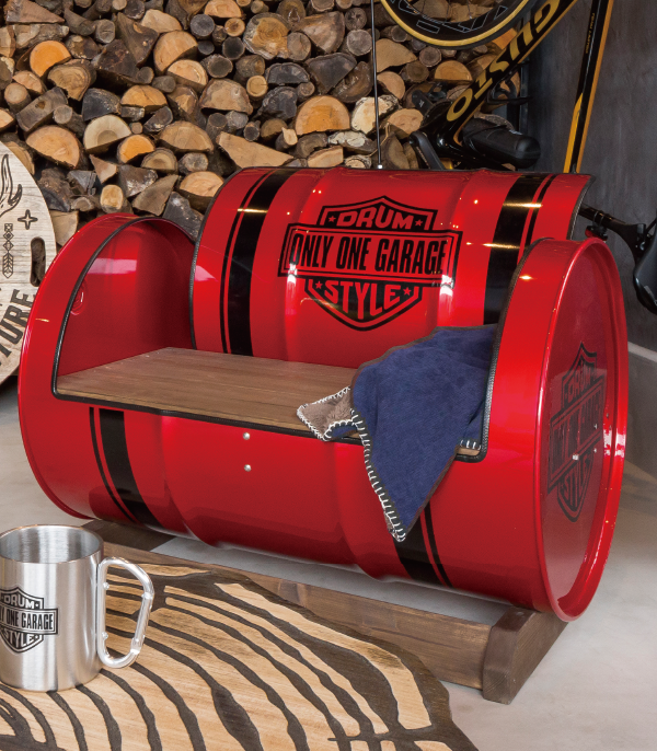インナーガレージにファニチャーやお気に入りの小物で飾る方が増えてきています。ドラム缶の形をしたベンチをはじめ、まさに水道管のような水栓柱、バケツのようなガーデンパン、グラフィカルなローテーブルなどでガレージやお庭の一角を自分流の遊び場に演出してみませんか。