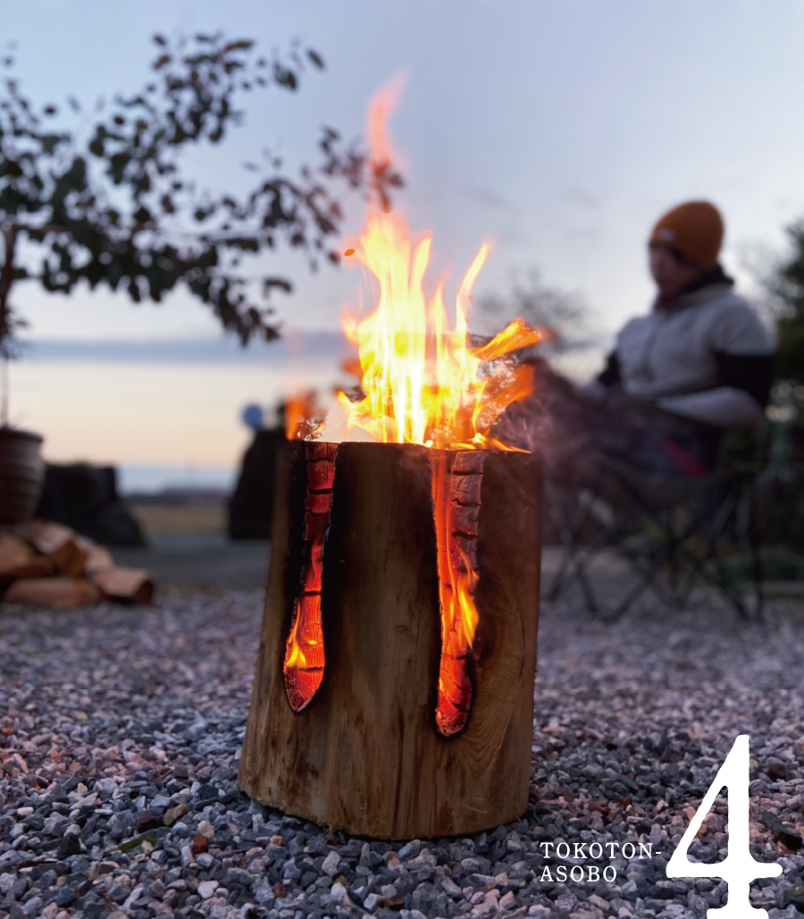 木目や味わいディテールが魅力的なチェーンソーアート、スリットから覗く炎が印象的な雰囲気を醸し出すスウェーデントーチ。ウッドデッキやガーデンファニチャーとは異なる木の魅力を楽しみませんか。