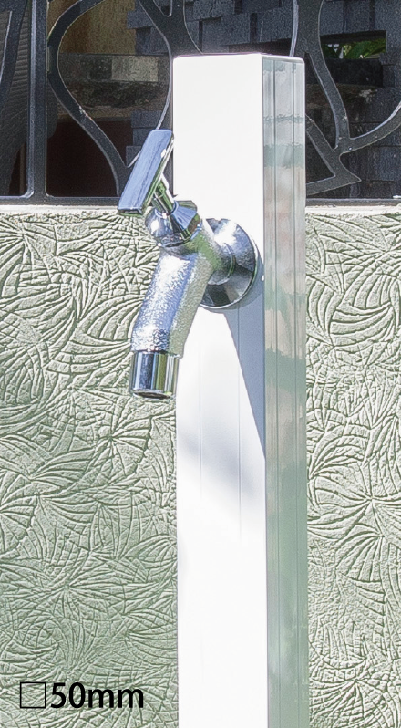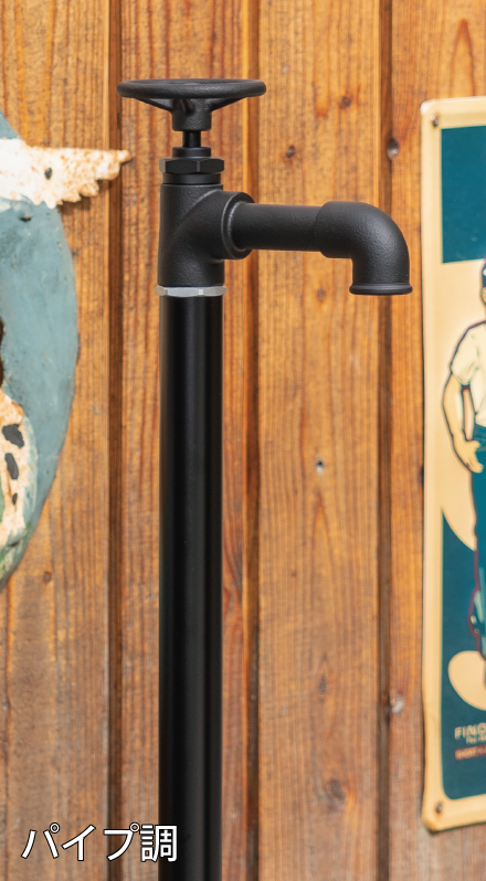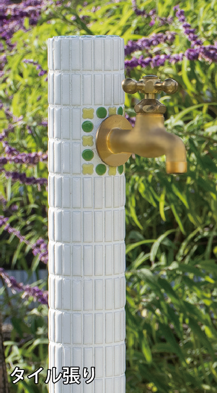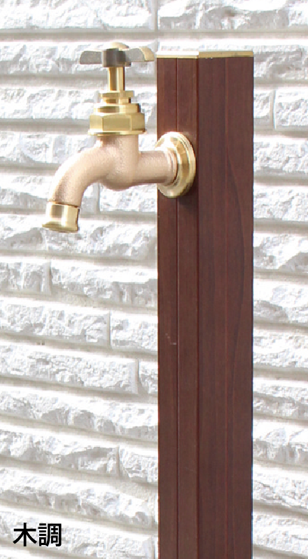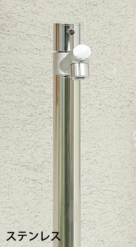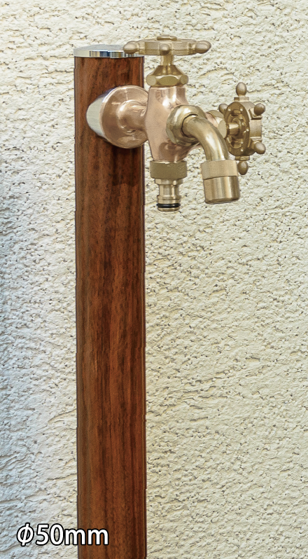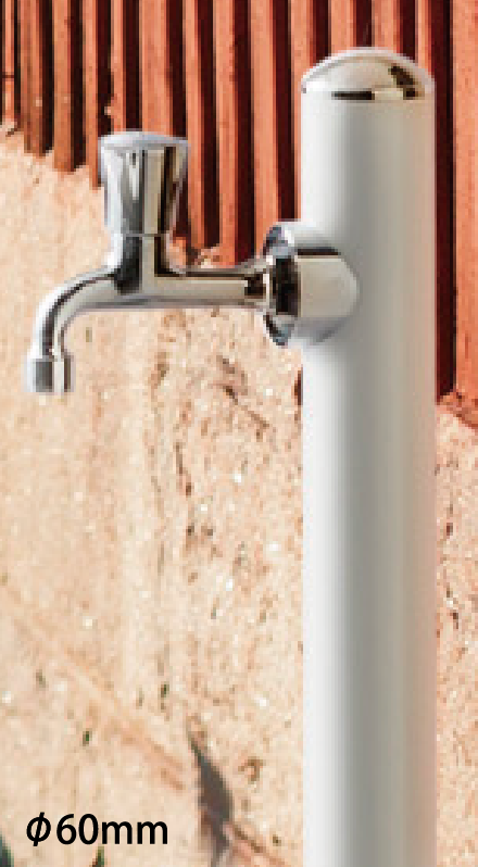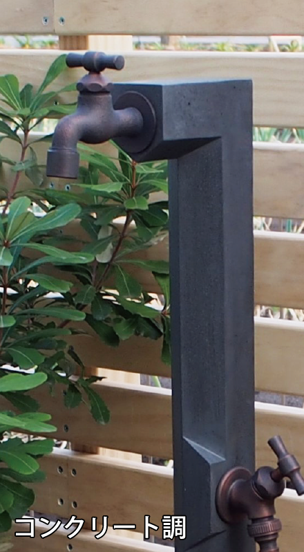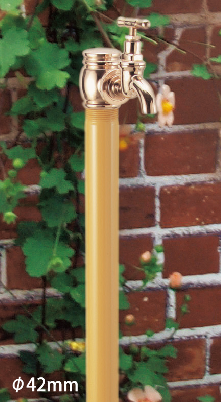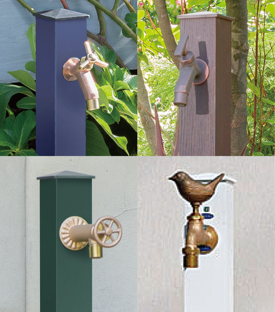 植栽への水やりをしながら小物を水洗いするなど水を使うシーンはいろいろとあり、吐水口に取り付けたホースを頻繁に着脱するのが面倒に感じることもあります。2つの蛇口を取り付けられる2口仕様なら補助蛇口をホース専用として使用できるので面倒な着脱も無く使い勝手がアップします。オンリーワンクラブの水栓柱には同一デザインで単口仕様と2口仕様の2種類を揃えたものを多数ご用意しています。
