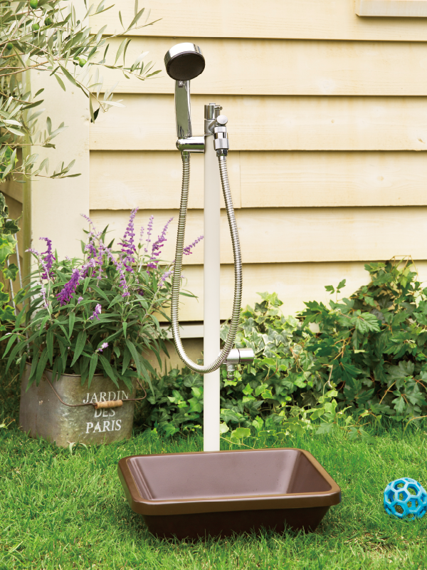 水まわりシーンで「あったらいいな」と思うアイテムとしてよく挙げられる屋外シャワー。散歩帰りにペットの足を洗ったり、海の帰りに体を洗い流したり、洗車や愛犬のシャワー、子供の水遊びなど、水をめぐるシーンがさらに充実します。また、お湯を使える混合栓タイプも揃え、肌寒い日のガーデニング作業にも最適です。コンパクトサイズからトールサイズのシャワーまで、サイズもデザインも豊富に揃えています。