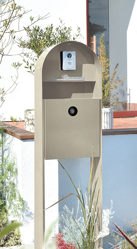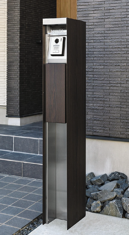 市販のインターホンが取り付けできる様になっています。インターホンが露出するタイプとカバーのあるタイプの2種類の機能門柱があります。