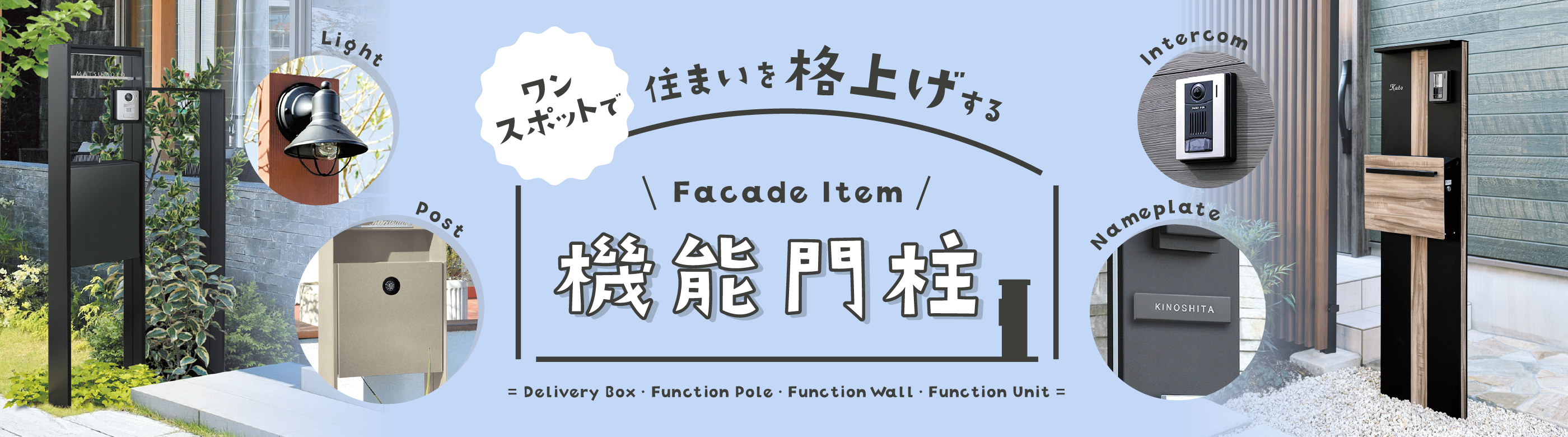 住まいにおけるファサードには、センスが見え隠れします。だからこそセンス良く外構は作りたいけど、狭小スペースだし、予算も抑えたいと考えている方は多いと思います。そんな時に役立つのが機能門柱や機能ユニットといったアイテムたち。住まいに必要な機能をコンパクトにまとめつつ、アレンジや使い方次第で、豪華な外構にも負けない素敵な住まいに格上げしてくれます。それでは、オンリーワンクラブが多彩に取り揃える「機能門柱」をご紹介します。