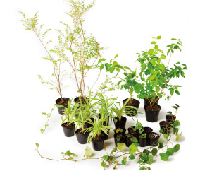 和モダンや日本風な庭に最適なセット。常緑なので季節問わず緑であふれ、冬にはセンリョウやマンリョウの実やツワブキの黄色い花が楽しめます。