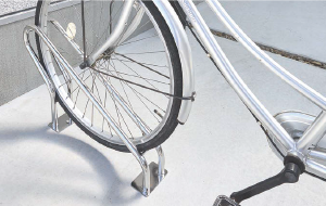 シルバーのシンプルデザイン。公園、集合住宅、公共施設などで雑然となりがちな自転車をスッキリ整然と止められるアイテムです。キーワイヤーで固定すれば盗難防止にもなります。