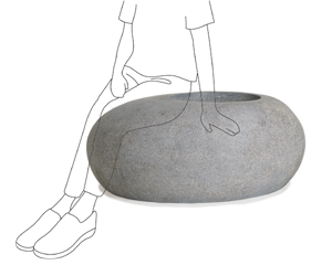 丸石のようなインパクトのあるビジュアルの「コブルベンチ」。鉢として使用するとともに、広い面の部分は腰掛けてベンチ使いもできます。本物の石に見えるようシェイプを重ね、こだわりのフォルムに仕上がりました。大人二人で軽々と移動でき、軽量かつ頑丈な素材となっています。